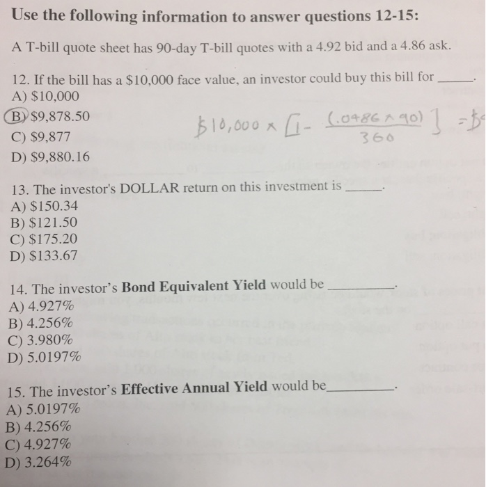 Solved A T Bill Quote Sheet Has 90 Day T Bill Quotes With